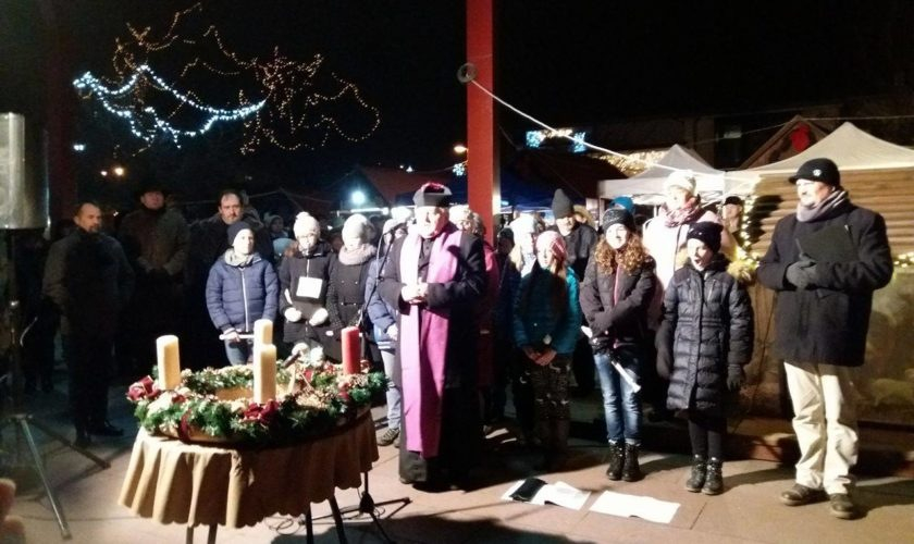 A város adventi koszorúján az első gyertyát Rieder András, a katolikus iskola igazgatója gyújtotta meg. A lelki készület ökumenikus áldásokkal ért véget.