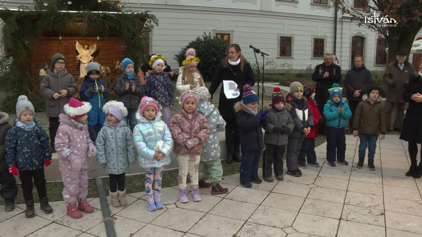 Az ünnepélyes gyertyagyújtásra az egri Jó Pásztor Óvoda óvodásai az ünnepvárás hangulatáhhoz illő verses-énekes műsorral készültek.