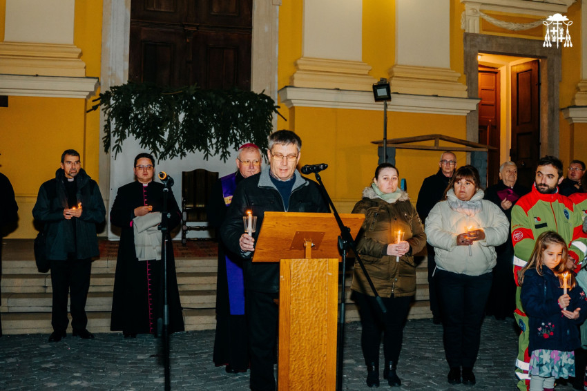 Böcskei László nagyváradi megyéspüspök üdvözlő beszédében elmondta: szeretnék, ha az adventi találkozás mindenkinek örömet okozna. „Mi már tizenegyedik alkalommal találkozunk itt, a egyházmegye főtemploma előtt. Összetartozunk, egy család vagyunk, és szeretnénk gondoskodni másokról, megosztani velük örömünket: Isten velünk van” – fogalmazott.