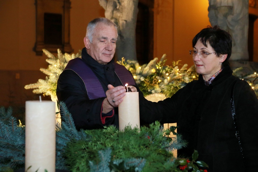 A veszprémi Szentháromság téren advent első vasárnapján Nagy Károly apátkanonok, a bazilika plébánosa áldotta meg a város adventi koszorúját, majd Brányi Mária alpolgármesterrel együtt meggyújtották az első gyertyát. Az ünnepségen közreműködött Halas Adelaida, a veszprémi Petőfi Színház színművésze.