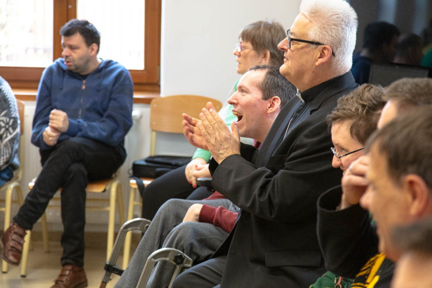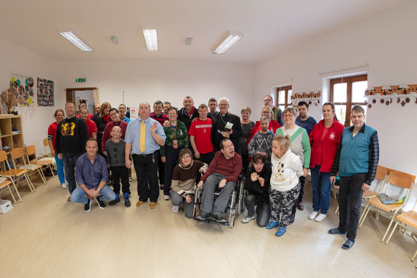 Spányi Antal püspök az ünnepi alkalmon elbeszélgetett az intézmény gondozottjaival, akik közül sokan ilyenkor élhetik meg a karácsony szeretetteljes, közös örömét.