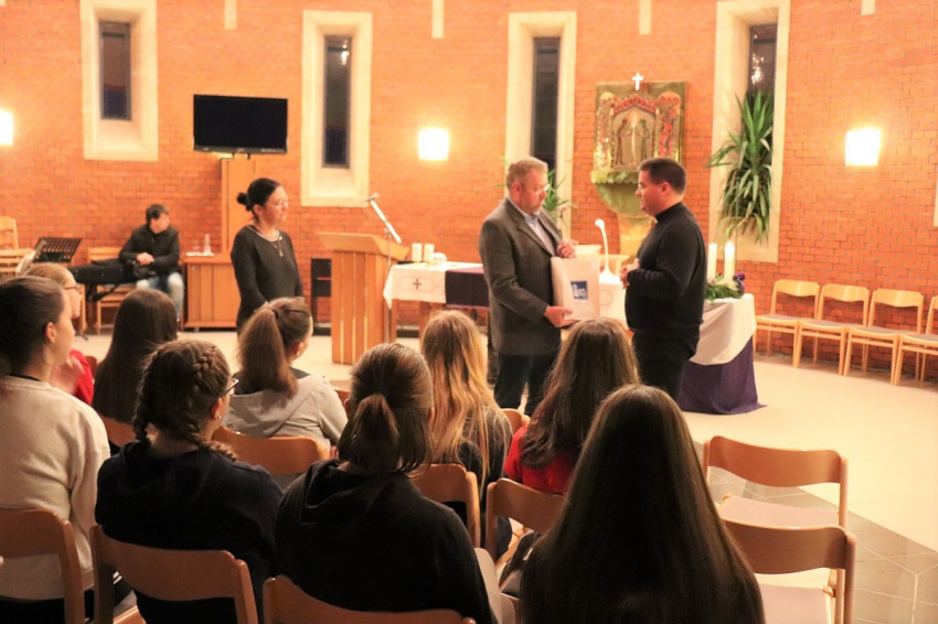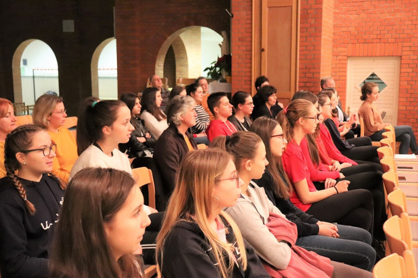 Váradi József, az Apor-iskola igazgatja köszöntötte a fiatalokat. Tizedikes lányok zenés koreográfiával lepték meg az előadót és a vendégeket.
