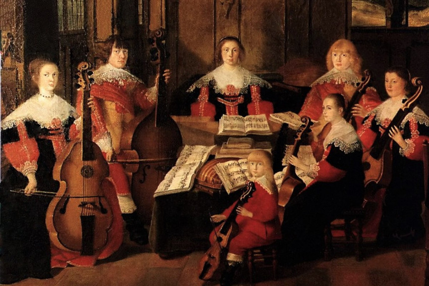 A második festményen, amely ugyancsak egy ismeretlen mester vagy esetleg Albert Freise munkája, már egészen más kép tárul elénk. A hercegi család ezen valóságos kamaraegyüttest alkot Ágost harmadik felesége, Sophie hercegasszony vezetésével. Voltaképpen egy viola da gamba-koncertnek lehetünk tanúi. Ezen a hangszeren muzsikál Rudolf August, Anton Ulrich és Ferdinand Albrecht herceg, valamint három, meg nem nevezett ifjú hölgy. A három fiú közül kettő Sophie nevelt fia volt, saját szülötte pedig a rá nagyon hasonlító Ferdinand Albrecht, aki a kép előterében egy gyermekre méretezett violát szólaltat meg éppen.