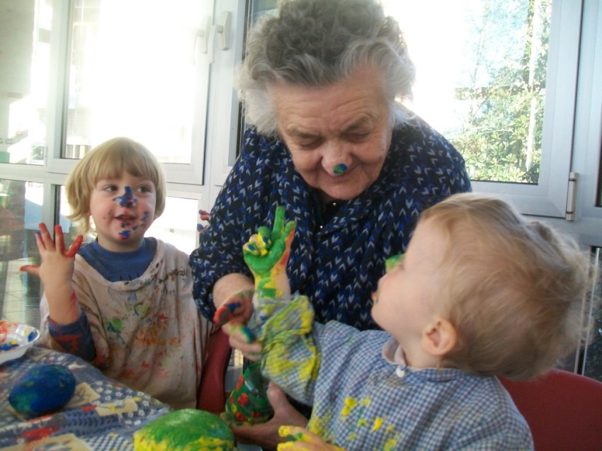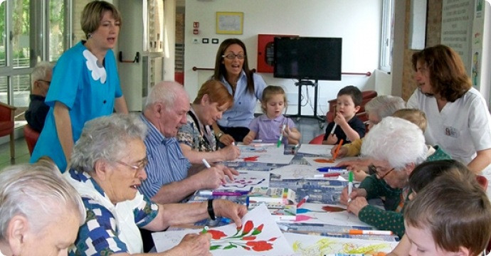 Ha egy családban együtt vannak kicsinyek és idősek, azonnal látszik, hogy a nagyszülő-unoka kapcsolat milyen gyümölcsöző, örömteli, problémamentes. Az együttlét igazi, felhőtlen öröme tükröződik benne. A piacenzai intézményben a gondozottak között van, aki majdnem egy évszázadot élt már, és van, aki még csak hároméves. A végletek itt is találkoznak, idősek és gyerekek együtt „növekednek”.
