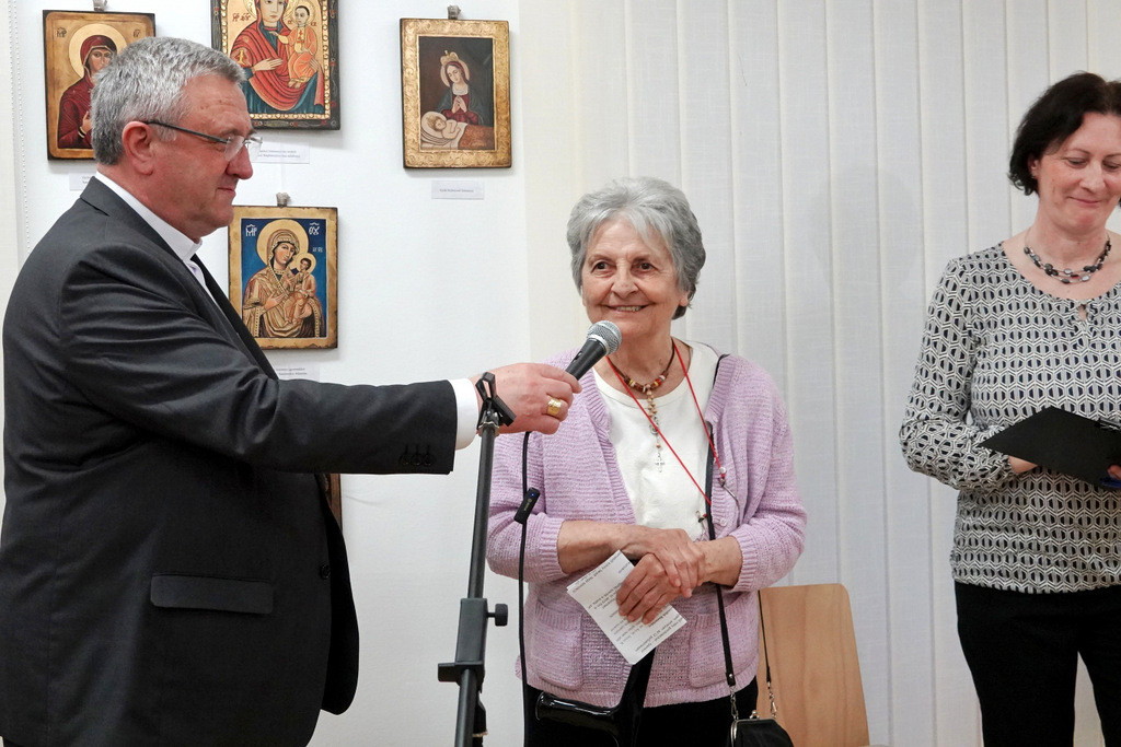 „A tárlat címe a régi jól ismert házi áldásra emlékeztet: ahol Isten jelen van, ott béke, szeretet van, ott nincs szükség. Az ikonokat végigszemlélve azok, akik megfordulnak ezen a kiállítóhelyen, ezzel a békével, szeretettel, ezzel a gazdasággal – hogy nincs szükségem másra – térhetnek haza szeretteikhez. Mert ha valamire ma szüksége van az embereknek, akkor az az isteni jelenlét, melyet ezek az ikonok sugallanak, mely mindnyájunk életét képes gazdagítani, beteljesíteni. Nagyon sokan sajnos nem ismerik ezt a békét, ezt a jelenlétet, ezt a találkozást Istennel. Ez a kiállítás most egy kicsit templommá vált; egy ikonosztáziont épített nekünk a művésznő” – fogalmazta meg Veres András püspök.