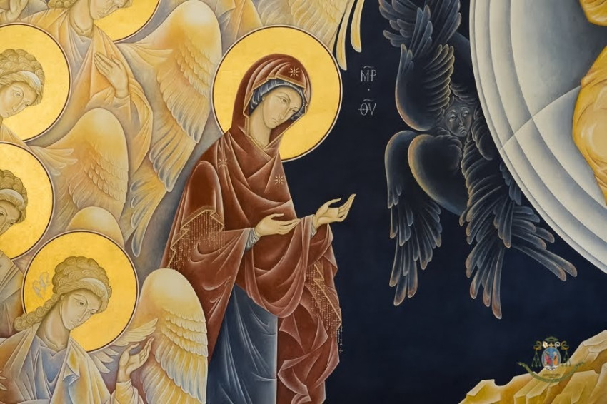 Van még két személy, a Szűz és a próféta-tanítvány. Emberi arcuk van, mint nekünk. Meghajolnak, miként az angyalok is, az Úr Krisztus imádásában, de meghajolnak valahogy előttünk is, a mi fáradságos és bizonytalan úton-járásunk előtt, kifejezve, hogy felajánlják segítségüket.