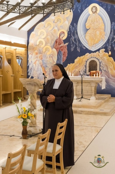 Köszöntőjében Jeges Mirjam OCD perjelnő szeretettel köszöntötte a generálist, András tartományfőnököt, a jelen lévő kármelita atyákat, testvéreket, papokat, a kármelita harmadrend minden tagját és minden vendéget. „Mária oltalma, palástja alatt megszűnnek a különbözőségek. Megtapasztalhatjuk, mit jelent az a szeretet, melyet Krisztus kíván tőlünk: hogy egyek legyünk, és hogy úgy szeressük egymást, amint Ő szeretett minket.