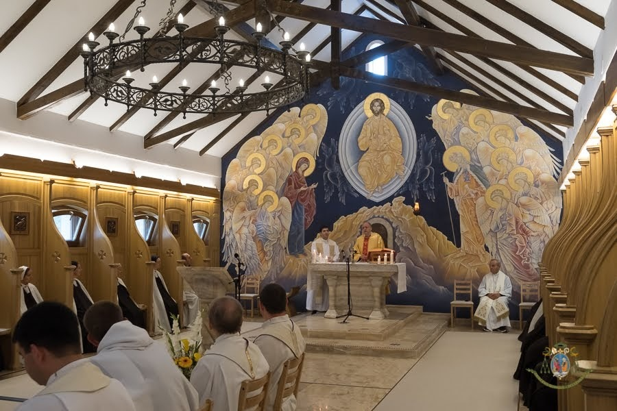 „Látjuk, hogy a hegyben van a tabernákulum, Jézus jelenléte. Jézusé, aki megígérte, hogy velünk marad, és velünk lesz a világ végéig. Látjátok: a hegy körül minden sötét, éjszaka van” – fogalmazott a szentmise szónoka. – Ez annak a hitnek a sötétsége, amelyben járunk. Ez a sötétség a megdicsőült Krisztus jelenlétét rejti. Épp ez a sötétség, ez az éjszaka hoz kapcsolatba bennünket a dicsőséges fénnyel; ez a sötétkék hoz kapcsolatba bennünket Krisztus, az angyalok és a szentek arany színével. A hit éjszakája megnyit minket Isten fényére. Miközben a világ fényei megvakítanak és eltávolítanak bennünket a valódi és örökkévaló fénytől.