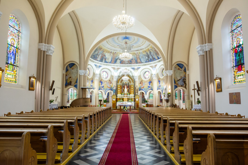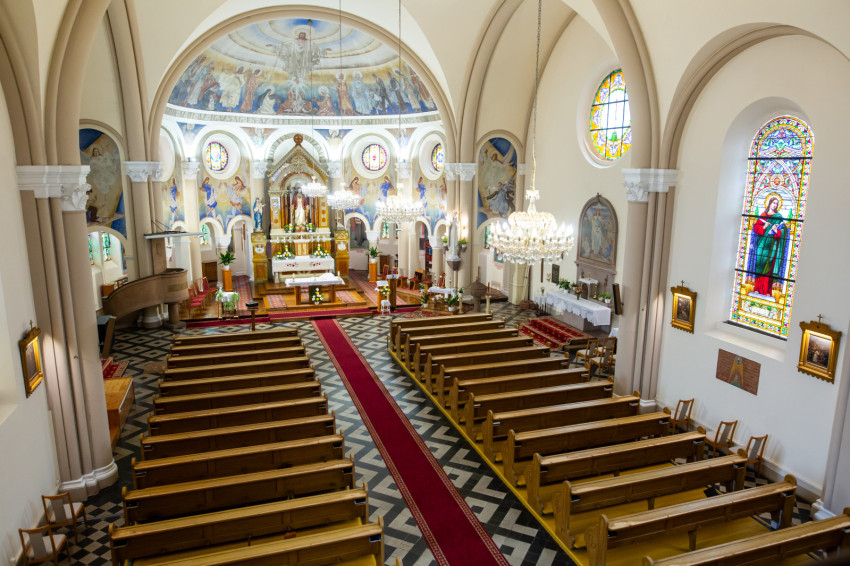 Az impozáns neoromán-neogót templomot Petrovácz Gyula, a főegyházmegye egykori főépítésze és Foerk Ernő tervezte. A tágas csarnoktemplomba utólag terveztek egy széles kereszthajót, mert akkor még attól féltek, nem férnek majd el a hívek. Állóhelyekkel együtt összesen 2300 embert tud befogadni az épület, amelyben kétszáz ülőhelyet alakítottak ki. Ma csak a nagy ünnepeken telik meg a templom. Szombaton egy előesti szentmise, vasárnap három mise is van.