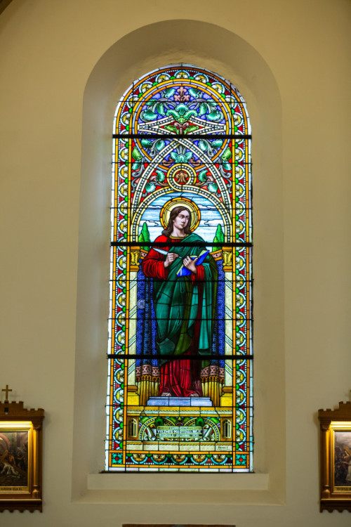 A kereszthajóban Szent Erzsébet- és Szent Imre-mellékoltárok, felettük üvegablakok, a templom végében kétoldalt Fájdalmas Anya- és Szent Rita-oltár kapott helyet. A templomhajó szenteket ábrázoló üvegablakai a nyolcvanas évek végén készültek adományokból. Alexandriai Szent Katalint, Szent Jánost, Szent Margitot és Szent Lászlót ábrázolják, a kóruson pedig Keresztelő Szent Jánost és a gyermek Jézust. A templom legrégebbi része a hatregiszteres orgona. A villám, mivel ez az épület a legmagasabb a környéken, tönkretette azt az orgonát, amely a templom kereszthajójában állt.