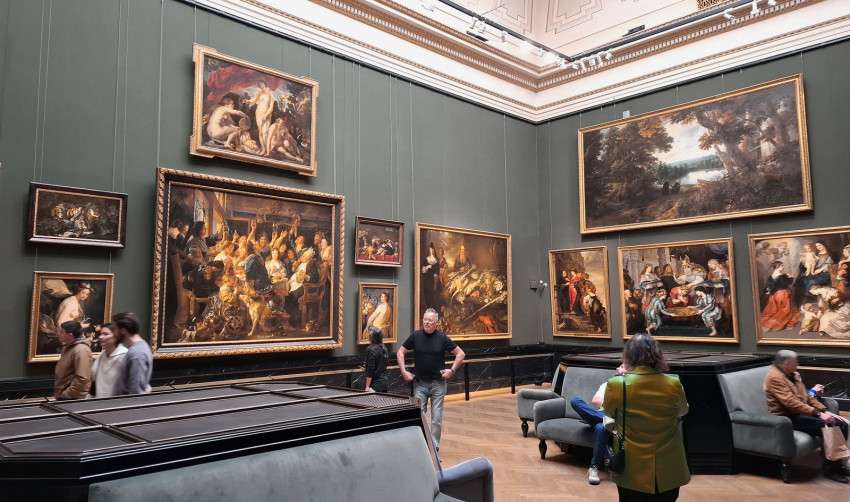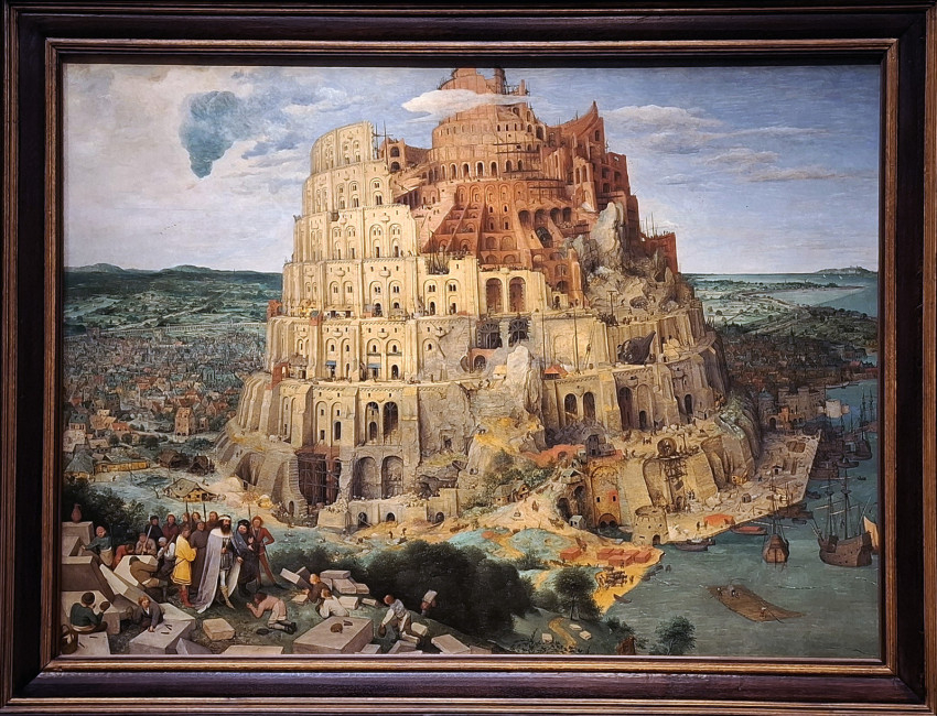 A Pieter Brueghel műveit bemutató termekben aztán megelevenedik az élet: lakodalomban táncoló parasztok, téren játszó gyerekek képei töltik be a kiállítótermet. Vagy éppen a borzalmas betlehemi gyermekgyilkosság ábrázolása... Egy másik festményen nagy igyekezettel épül a Bábel tornya. Még csak félig van készen a hatalmas építmény, így aztán beleláthatunk a munkálatok folyamatába, részleteibe. A legfelső szint már a felhőket súrolja. Varázslatos táj, zsúfolt város, jobbról pedig a tenger veszi körbe a monumentálisra tervezett tornyot. Brueghel hihetetlen fantáziával, részletező gazdagsággal megfestett képei elképesztő élményt nyújtanak.