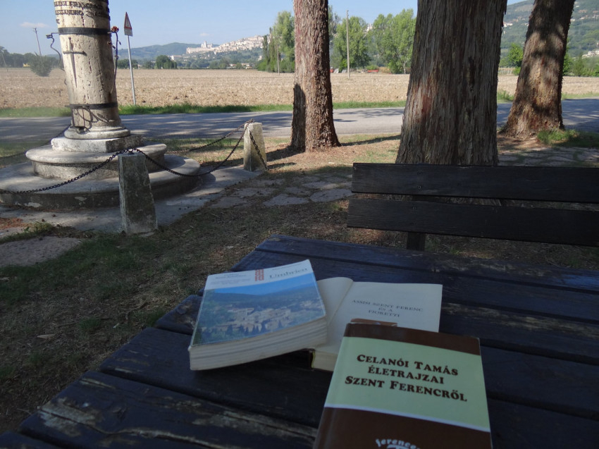 Múlt vasárnap, kevéssel dél után érkezem a helyszínre, rekkenő melegben, miután fent, Assisi városában bezárták a templomokat. Ide sem azért jövök, mert nyitott templomot várok, hanem csöndet és békét. Mindkettőt megkapom, de még sokkal többet. Soha nem jártam itt, senki nem ajánlotta, csak Boldog Celanói Tamás első Szent Ferenc-életrajzában. Nem hiába jártam pár hete a ferences Celanói Tamás sírjánál, az Abruzzók lábánál fekvő Tagliacozzo felsővárosában. Említett könyve 16. fejezetében ír Boldogságos Ferenc rivotortói tartózkodásáról, olvasom egy nagy fa árnyékában a zárt templom mellett. Előttem a Subasio hegy bokamagasságában Assisi, sejtelmes párába burkolva fehér és rózsaszín kövekből emelt házaival, tornyos templomaival és kanyargós várfalával. Mint egy mese, olyan a látomás, de Celanói Tamás történelmet ír, ahogy tud, szerfölött nagy igyekezetében: „Boldogságos Ferenc társaival együtt Assisi tőszomszédságában azon a helyen állapodott meg, amelyet Rivo Tortónak neveztek. Itt egy pajta állt magában. Ennek fedele alatt húzták meg magukat, semmibe véve a nagy és fényes palotákat, és kerestek oltalmat az esők és viharok tombolása elől. Mert a pajtából, szokta mondogatni a szent – innen az idézet –, sokkal könnyebb út vezet a mennybe, mint a palotából. Itt éltek a testvérek Boldogságos Ferenc társaságában, sok munkában és a legnagyobb nélkülözésben; sokszor még a mindennapi kenyérnek is híjával voltak, és kénytelenek voltak beérni azzal a répával, amit végső szükségükben az assisi lapályon itt is, ott is összekoldultak.” Itt felnézek, és körbefordulva konstatálom Celanói Tamás pontos helyszínrajzát. Tovább olvasom: „A hely annyira szűk volt, hogy kényelmesen sem ülni, sem feküdni nem tudtak rajta. De azért egyetlen zokszó, egyetlen panasz nem hangzott el közöttük, hanem derűs, örömtől repeső lelkük megőrizte nyugalmát.”
