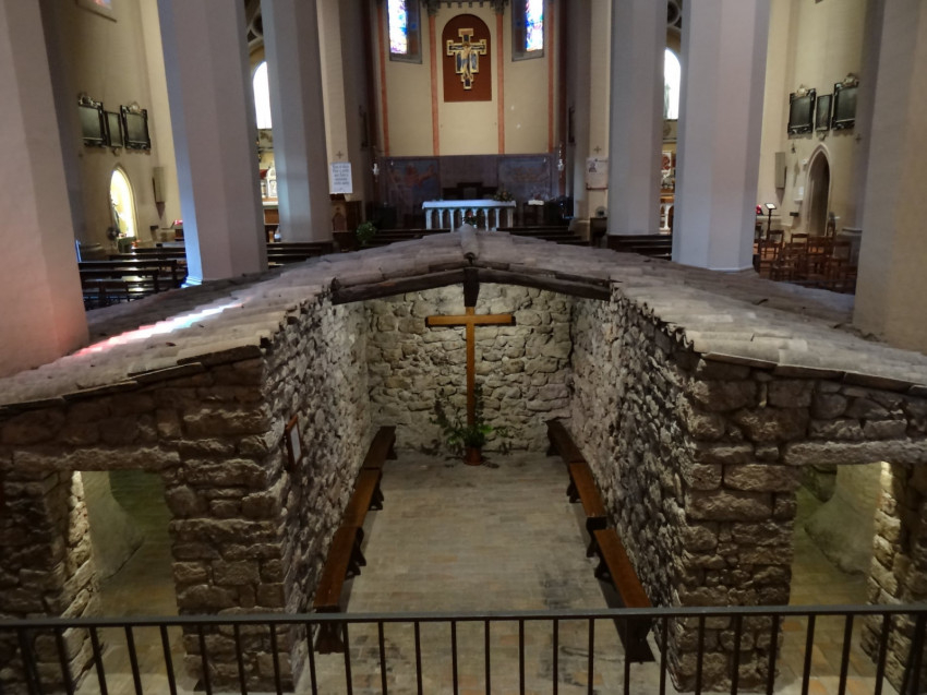 Az árnyas fák alatt nem is veszem észre az idő múlását. Már a Vita Secundát, Tamás testvér második Ferenc-életrajzát olvasom, amikor fél négykor megnyitják a bazilikát, és hátulról belépve az egykori düledező pajta újjáépített, cseréptetős változatát találom ott. A templom padlójába süllyesztve áll most, ahogy egykor a régi lapályos talajon állhatott. Minden új itt, hiszen az 1854-es földrengés után a 14. században a Tugurium fölé emelt régi templomot neogótikus stílusban újjáépítették.