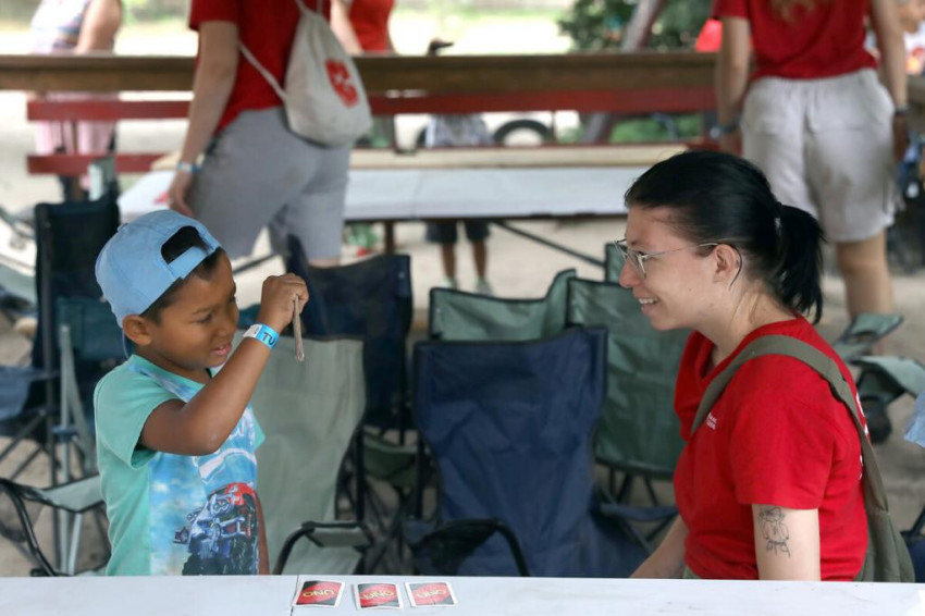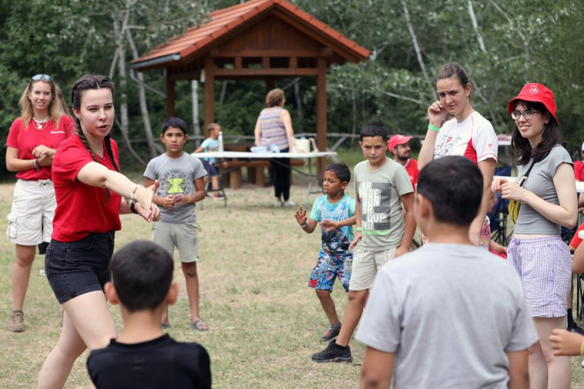 Különleges színfoltja a tábornak egy 21 éves marokkói lány, Manal, aki előző nap érkezett Budapestre, és kilenc hónapon át dolgozik majd a játszótérprogramban. Európai uniós pályázatból nyerte a Szeretetszolgálat a lehetőséget, még ketten érkeznek hamarosan. Megkönnyíti Manal számára a beilleszkedését, hogy a kicsik viszik magukkal, folyamatosan beszélnek hozzá, kérdezgetik. Meglepően sokan vannak a gyerekek közül, akik szívesen és jól társalognak alapszinten angolul, még a kisebbek között is.