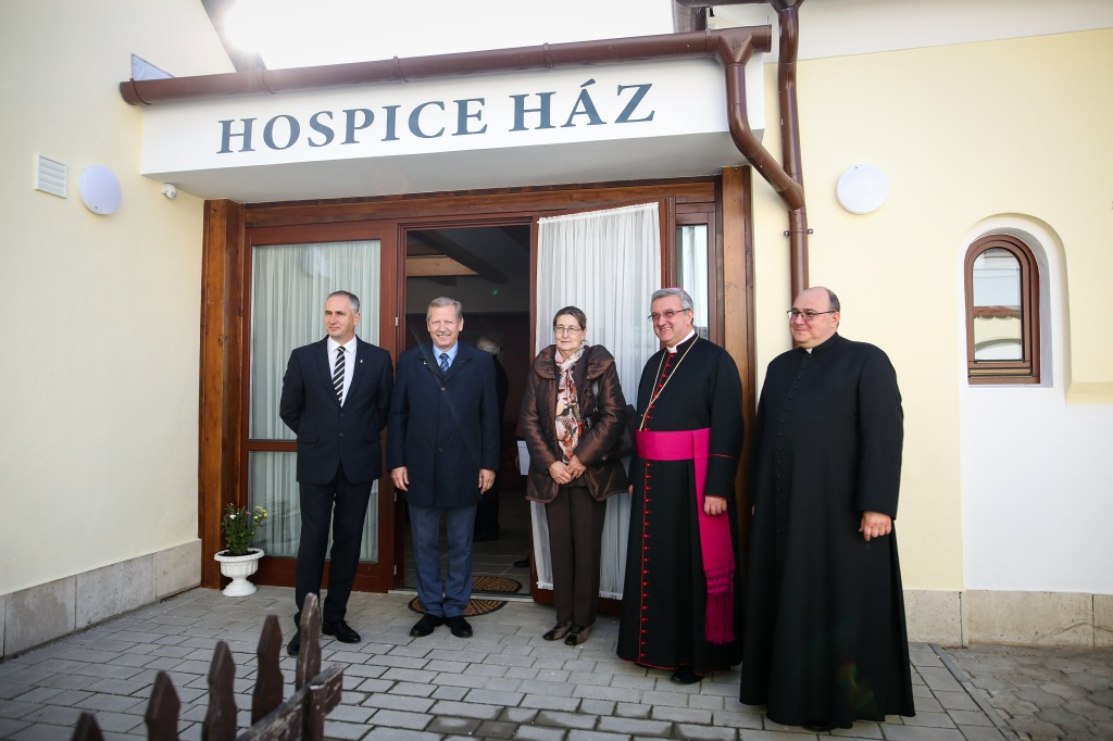 A szentmisét követően sor került a templom közelében kialakított hospice-ház megáldására. Ezen a helyen a múlt és a jelen, az ég és a föld összekapcsolódásának tanúja lehetett mindenki. Ma már a történelem ködébe vész, de a kis Szent László-kápolna melletti épület egykor szerzetes nővérek által vezetett ispotály volt. Ez a ház újult meg és lett a város, illetve az észak-dunántúli régió első, gyógyíthatatlan betegeket befogadó és ápoló intézménye. Ismét lehajolt az ég a földre. A jubileumi év február 11-én, a lourdes-i jelenések napján kezdődött, amikor Veres András püspök a betegekről, a haldoklókról, az idősekről prédikált. A november 11-i vasárnapon az adakozásról, a megosztásról tanított a főpásztor. A hospice-ház pedig hihetetlen összefogás, megosztás és adakozás eredményeként valósulhatott meg.