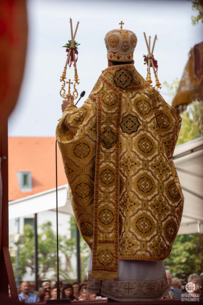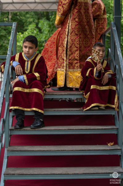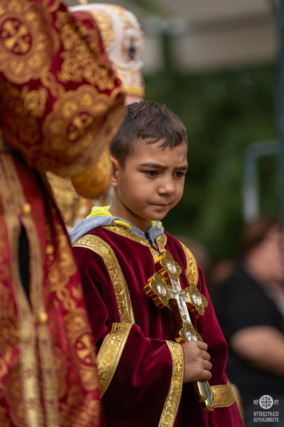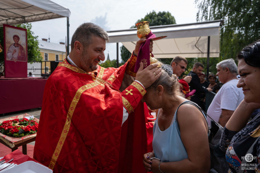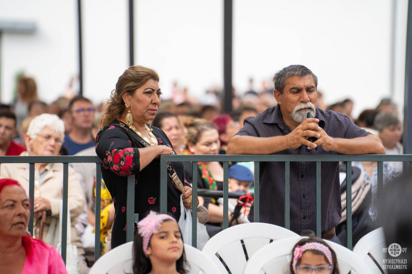 A magyar és cigány nyelven bemutatott Szent Liturgiára Szocska Ábel nyíregyházi megyéspüspök tíz áldozópapból, két diakónusból és az asszisztenciából álló – az ünnepen előírt böjti bíborszín liturgikus öltözékű – menet végén vonult be.