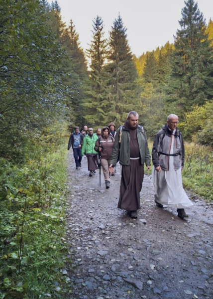 Szombaton reggel a csapat nagy része gyalog zarándokolt Csíksomlyóra. Az éjszakai eső után Isten külön ajándéka volt útjukon a ragyogó napsütés. A közösségi ima és Bátor Botond OSPPE elmélkedése mellett a lelki elmélyülést segítette az ősz színpompája is.