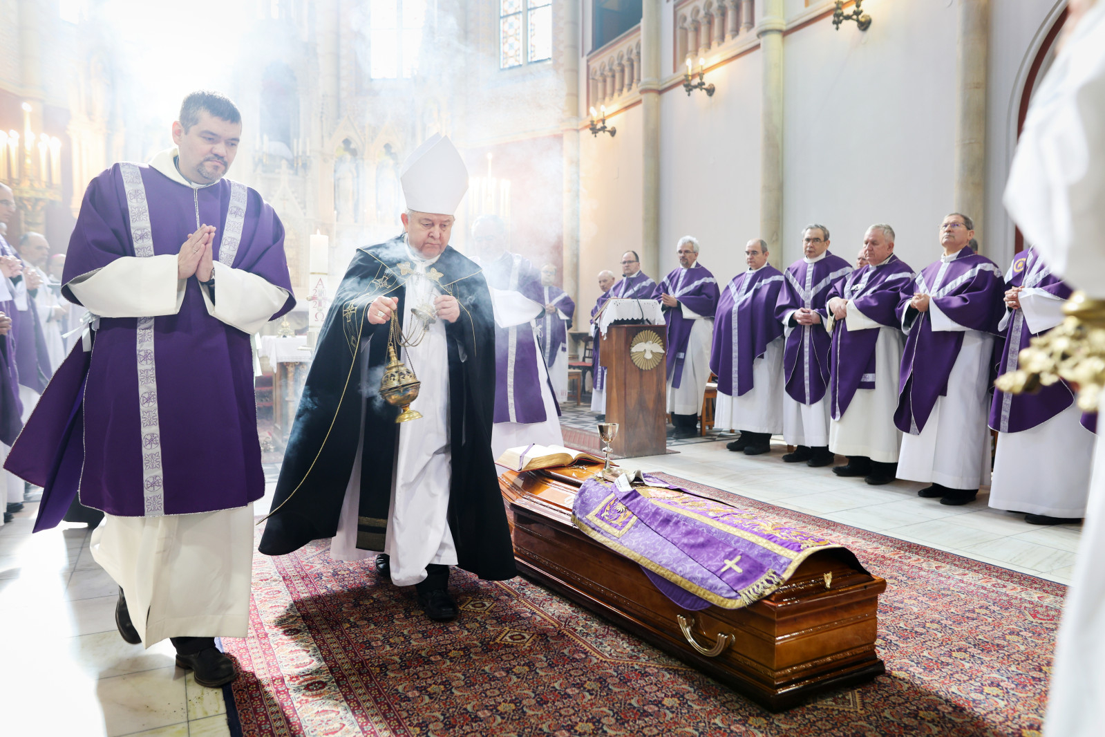 A gyászmisén koncelebrált Marton Zsolt váci megyéspüspök, Varga Lajos váci segédpüspök, Gyulay Endre nyugalmazott szeged-csanádi megyéspüspök, Fehérváry Jákó OSB, a Sapientia Szerzetesi Hittudomány Főiskola rektora; Bagyinszki Ágoston OFM rektorhelyettes; Puskás Attila, a Pázmány Péter Katolikus Egyetem Hittudományi Karának dékánja; valamint Lukács László rendtársai és tisztelői. A szertartáson jelen volt Fülöp Attila, a Belügyminisztérium gondoskodáspolitikáért felelős államtitkára.