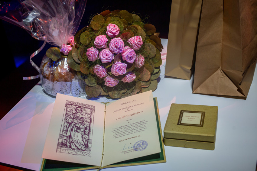 A beszédet követően Veres András átadta a Szent Erzsébet rózsája díjat Tóth Katalinnak, aki megköszönve azt a következőket mondta: „A díj nemcsak engem illet, hanem a munkatársaimat is, valamint Adony egyházi és önkormányzati vezetőit, akik támogatták a munkámat. Engedjék meg, hogy munkatársaim nevében (is) vehessem át az elismerést!"