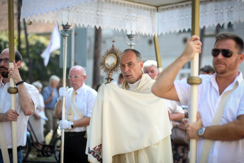 A szentmise záró áldása előtt a hívek az Oltáriszentséget követve, énekelve, körmenetben vallották meg hitüket, mutatták meg Istenhez való hűségüket a világ számára. A rekkenő hőségben rövid szünet után, a délutáni órákban a búcsú résztvevői a betegek gyógyulásáért imádkoztak, szentmisén vettek részt, melyet a betegekért, idősekért, orvosokért és ápolókért mutattak be, majd a kétnapos búcsút Papp Tihamér ferences aranymiséje zárta.
