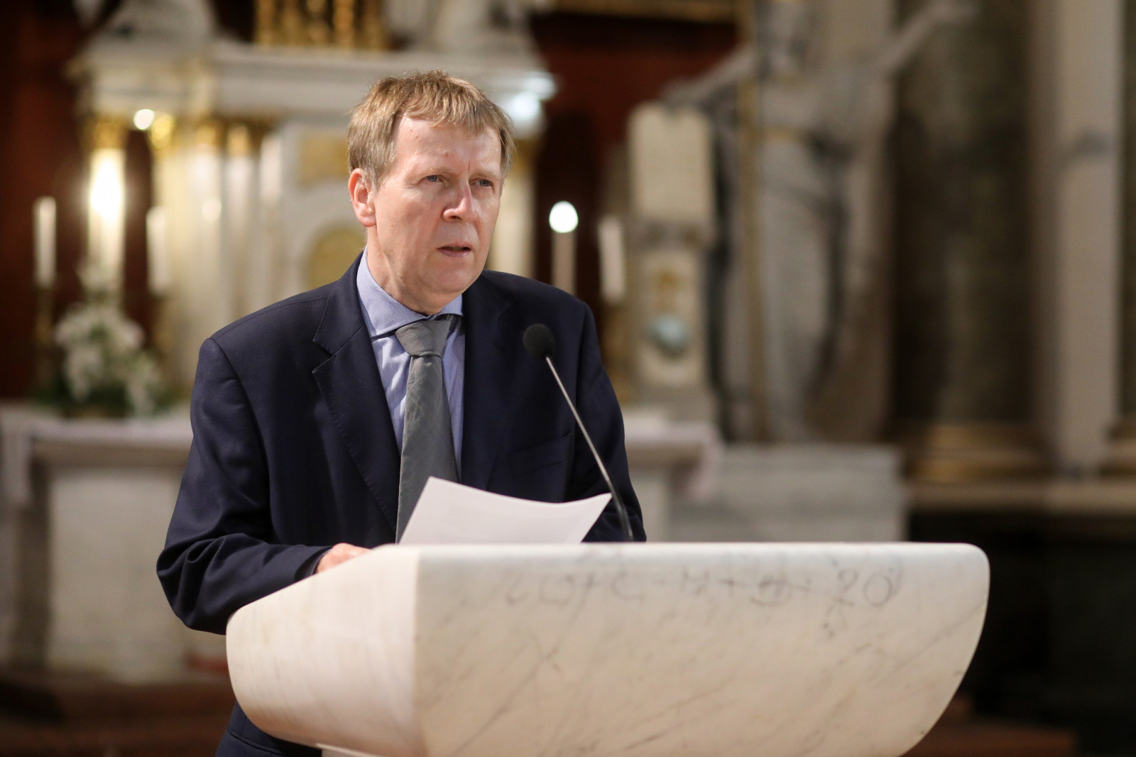 Szőke Péter, a Sant’Egidio közösség budapesti vezetője köszöntőjében kiemelte, hogy az UNHCR intézményének léte azt mutatja, hogy a közöny dacára a világ mégis odafigyel a menekültekre. Idézett Ferenc pápa az idei menekültek világnapjára írt üzenetéből (az üzenetet 2018 óta a szeptember utolsó vasárnapjára áthelyezett világnapon tesszük közzé – a szerk.), amely így buzdít: „Meg kell tanulnunk osztozni, hogy együtt növekedhessünk, és senkit ne hagyjunk magára. A világjárvány arra emlékeztetett minket, hogy mindannyian egy bárkában evezünk. Közösek az aggodalmaink és a félelmeink, és ez ismét ráébreszt bennünket arra, hogy senki sem menekülhet meg egyedül. A növekedéshez az szükséges, hogy tudjunk osztozni.” A gazdagoknak osztozniuk kell a szegényekkel javaikon, a gazdagabb országoknak a szegényebb országokkal. Ez a Biblia szinte minden lapján ismétlődő tanítás, sőt parancs.