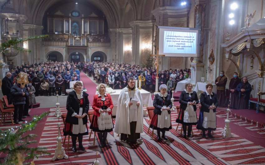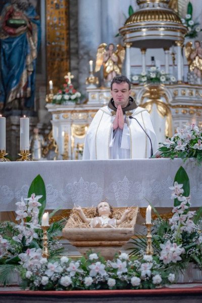 A hat órakor kezdődött szentmisét Urbán Erik, az Erdélyi Ferences Rendtartomány provinciálisa mutatta be. A tartományfőnök ünnepi beszédében rámutatott: a megtestesült Ige körül volt a Szűzanya, Szent József, és köré gyűltek a pásztorok is, akik megtapasztalták Isten jelenlétét az életükben. Hozzátette: tőlük mi is megtanulhatjuk megtapasztalni Isten jelenlétét az életünkben.