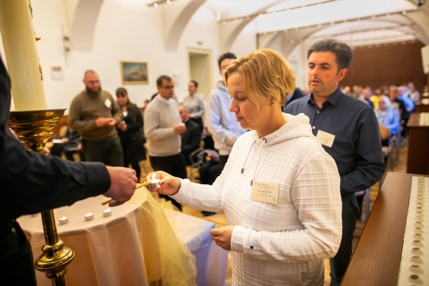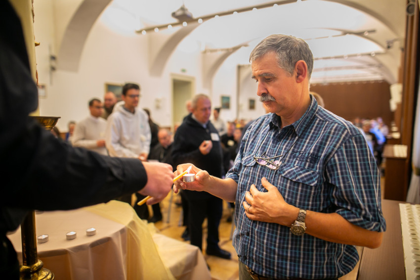 Az egyházmegyei küldöttek a húsvéti gyertyáról átvették a lángot mécseseikre, amelyeket azután egymás mellé helyeztek, ezzel jelképezve, hogy a húsvét, a megváltás és a feltámadás fényénél végzik a szolgálatukat, hordozzák terheiket, élik meg örömeiket, így formálódnak és merítenek erőt az előttük álló feladatokhoz.
