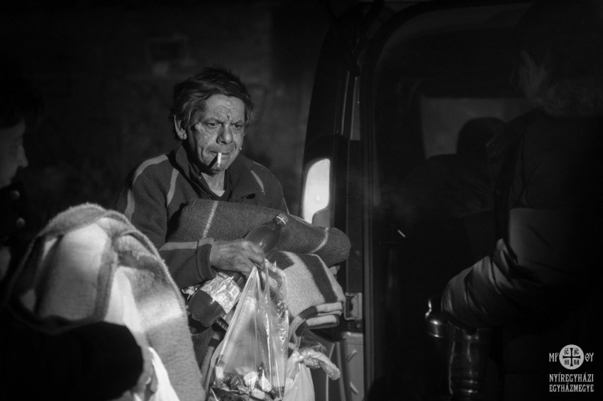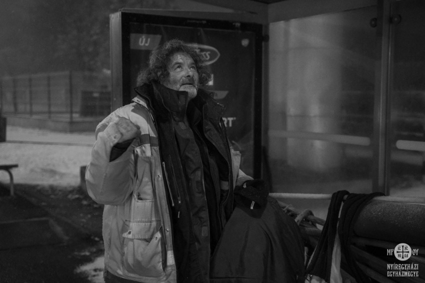 Az autó hőmérője mínusz három fokot mutat. A hőérzet ettől hidegebb, amikor kiszállunk. Valami enyhe havazásféle is elkezdődött este hatkor, amikor elindul két karitászmunkatárs a nyíregyházi éjszakába. Az időjárás-előrejelzés mínuszai mozdították ki őket, hogy felkeressék a város hajléktalanjait, és forró teát, meleg takarót, konzervet, édességet vigyenek az utcán élő embertársaiknak.