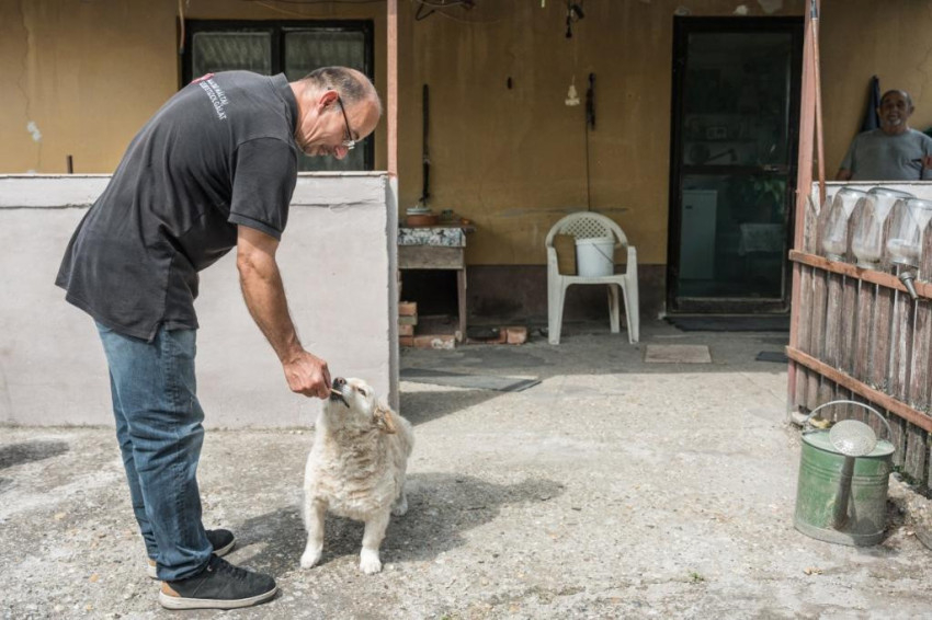 Pista bácsi kutyája is lelkesen fogadja a látogatót. Jól ismeri már, amikor a gazdája kórházba került a télen, Mányoki Mihály járt ki hozzá minden áldott nap, hogy megetesse.