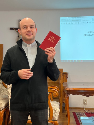 A köszöntő, majd a bevezető ének és ima után Ipacs Bence atya adott tájékoztatást az akolitusok kompetenciáiról, áttekintve a bevezetés előtt álló új Római Misekönyv változásait, kiemelve a szentmise liturgiájában való részvételről, akolitusként való szolgálatról szóló általános rendelkezéseket.