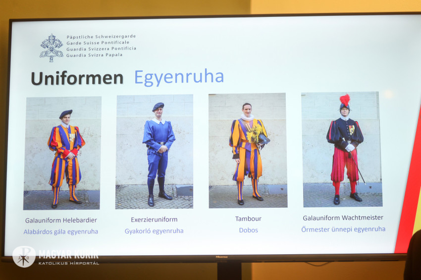 A Svájci Gárda történetéről elmondta: a vatikáni testőrséget II. Gyula pápa alapította 1506-ban. Svájc akkor is kis állam volt, nagyhatalmak vették körül, lakóinak mindig meg kellett védeniük magukat.
