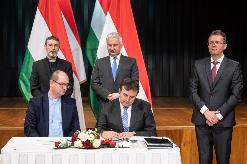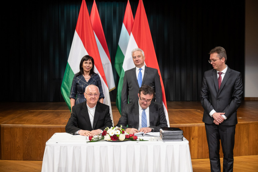 Mindezek alapján – az egyházi fenntartókkal folytatott további egyeztetések eredményeként – írták alá kedden az egyes katolikus és református felsőoktatási intézmények hitéleti és világi képzéseinek a megállapított minőségi indikátorrendszerek mentén történő, a kiegyensúlyozott működést és a kitűzött szakmai célok elérését lehetővé tevő és garantáló egyedi közfeladat-finanszírozási megállapodásokat.