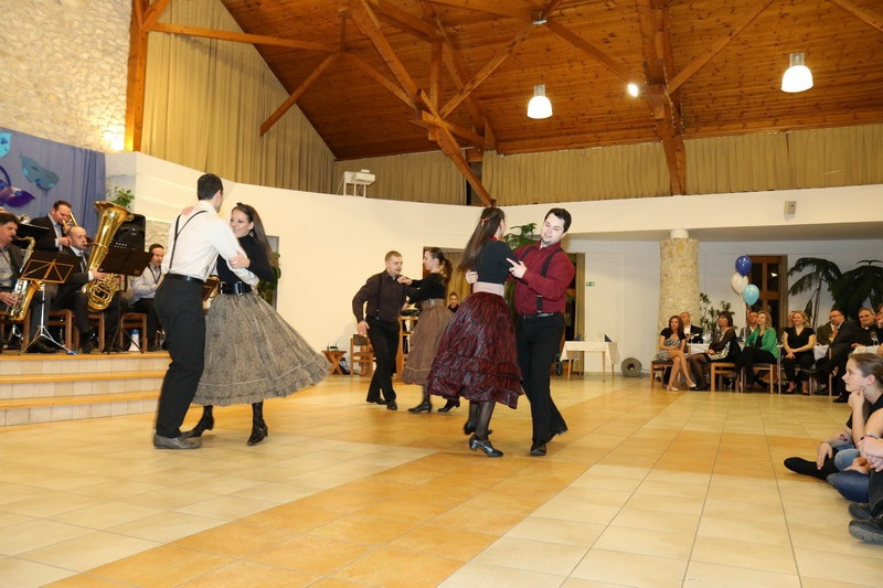 A vacsora végeztével még egy meglepetésben részesülhettek a szórakozni vágyók: a Kecskeméti Fúvószenekar Baráti Társaság a Star Wars zenéje mellett hívta be az iskola vállalkozó kedvű tanárait, akik korhű öltözetben elevenítették föl egy ABBA-koncert táncosainak produkcióját.