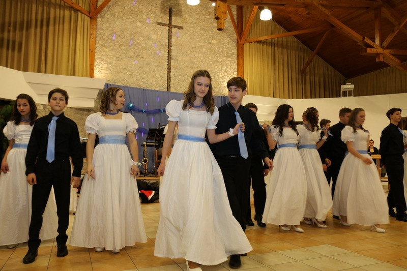 A LÁJK diákszínjátszó csoport – melyet idén is a 7-8. tanulók és öregdiákok erősítenek – jókedvű, felszabadult, humoros játéka alapozta meg az este hangulatát. Műsoruk végén érkeztek a Kecskemét Táncegyüttes meglepetés vendégei. Ezt követően Hatházi Róbert, a Szentcsalád Plébánia plébánosa, majd Jeney Gábor a főplébánia plébánosa, végül Papp Zsolt, az iskola igazgatója köszöntötte a vendégeket.