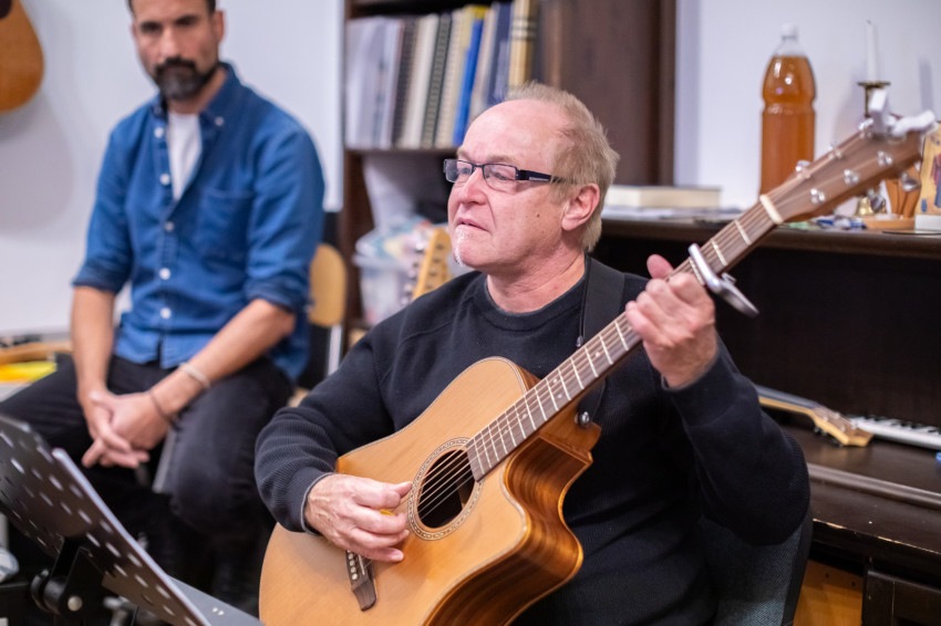 A négy alkotóval arról beszélgettünk, hogyan jött létre az előadás. Greguss Sándor mindig istenhívő ember volt, de ahogyan a Hang szól fentről című önéletírásában írta: nem tartozott a rendszeresen templomba járó, buzgó hívek közé. A fordulópontot az jelentette az életében, amikor hét évvel ezelőtt csontvelőrákot diagnosztizáltak nála. Borka Zsolt emlékeztet, az orvos azt mondta neki: uram, magának két hete van hátra. Ettől Sándor – érthetően – teljesen összeomlott, és Istenbe kapaszkodott, mint fuldokló a szalmaszálba. Miután csodával határos módon felgyógyult, lélekben is megélte az istenhitet, templomba járt, gyónt, áldozott. „Előttem van, ahogyan a gitáros miséken odajött hozzám, megpengette a húrokat, és azt mondta: jól van, most már kezdhetitek” – meséli az evangelizáló zenész.