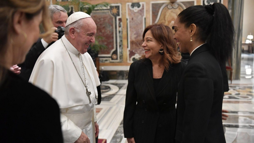 Ferenc pápa arra kérte a sajtó munkatársait, hogy segítsék emlékeztetni a világot azokra, akiket hitük vagy etnikai hovatartozásuk miatt üldöznek, akik diszkriminációt szenvednek vagy erőszak és emberkereskedelem áldozatai. Azokról is beszélni kell, akik otthonaik elhagyására kényszerülnek katasztrófák, háborúk, terrorizmus, éhínség és vízhiány miatt. „Ők nem számok, hanem arcok, akiknek történetük van és boldogságra vágynak. A jóság láthatatlan óceánját is érdemes megismertetni a világgal, ami erősíti a reményt. A női újságírók különösen érzékenyek ezekre a történetekre” – jegyezte meg a pápa.