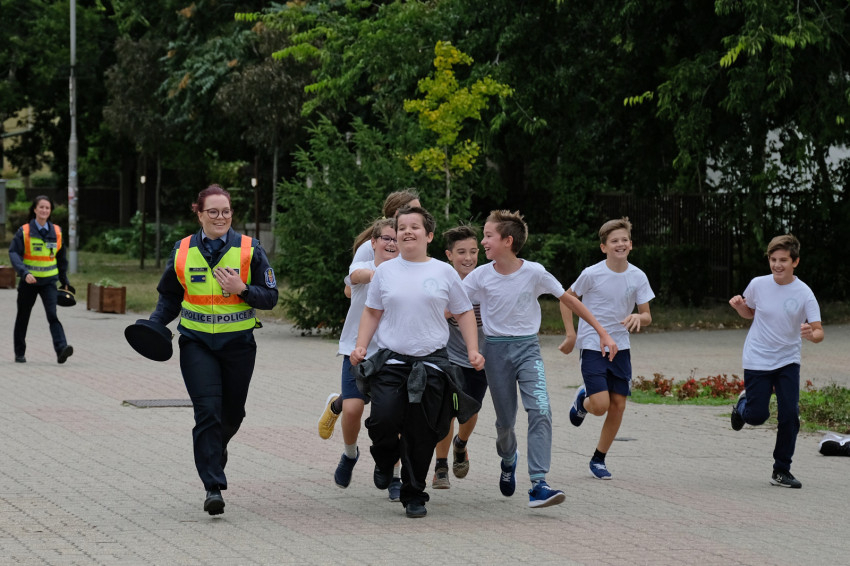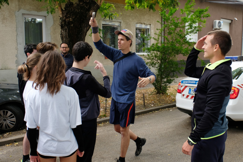 Fél tíz körül megérkeztek a polgárőrök és a rendőrök, hogy a 2021 méteres futásnál a forgalom lezárásával biztosítsák az Ady Endre úton való átjutás lehetőségét az iskola diákjainak és tanárainak, illetve rendőrautóval felvezessék a futókat a szűk kispesti utcákon.