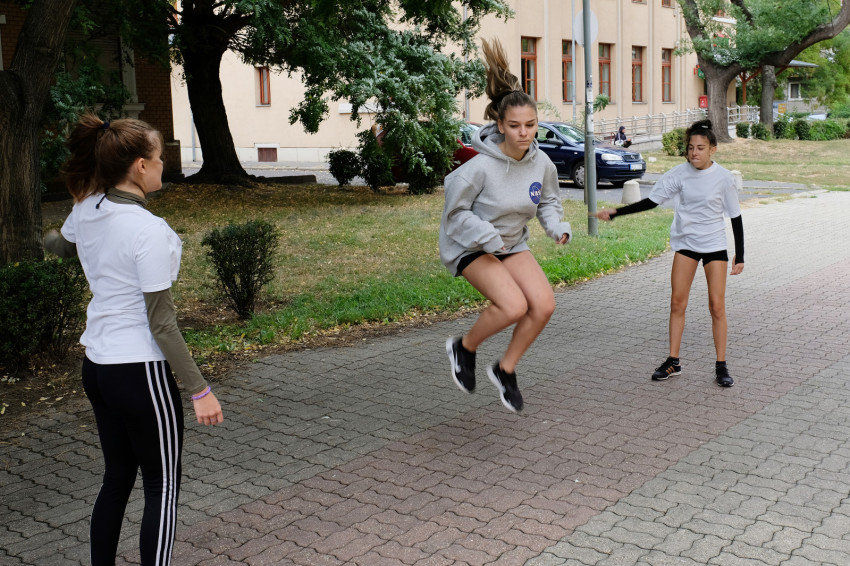 Közben egy rendőrnő és egy tanárnő is befut a célba, látszik, hogy élvezik a diákokkal való közös mozgást. A végzős lány elmondja, hogy is szeretné beépíteni a mozgást a mindennapjaiba. Az osztálytársai általában küzdősportot űznek, táncolnak vagy kézilabdáznak. „Én szeretnék bokszolni, mert az megmozgatja az egész testet, jól ki lehet adni a felgyűlt feszültséget, és önvédelemre is kiváló. Általában azért a fiúk fiús, a lányok lányos sportot űznek. A mostani programokból én is várom a táncot nagyon, de az evezőpadra is kíváncsi vagyok.” Az osztálya már el is kezdte a sorversenyt, így gyorsan félbeszakítjuk a beszélgetést.