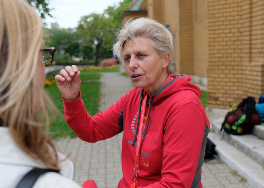 A templom oldalában hálós panelek sorakoznak. Néhány fiatal egy kisebb labdával várja az iskola tanulóit, vezetőjük Kunos Anita. Mint később megtudjuk, Magyarországra 2016-ban ő hozta be a tchoukballt, és nemzetközi szinten is szakedző. „A játékosaimmal meghívtak a mai sportnapra, holnap pedig egy nemzetközi tornára megyünk.”
