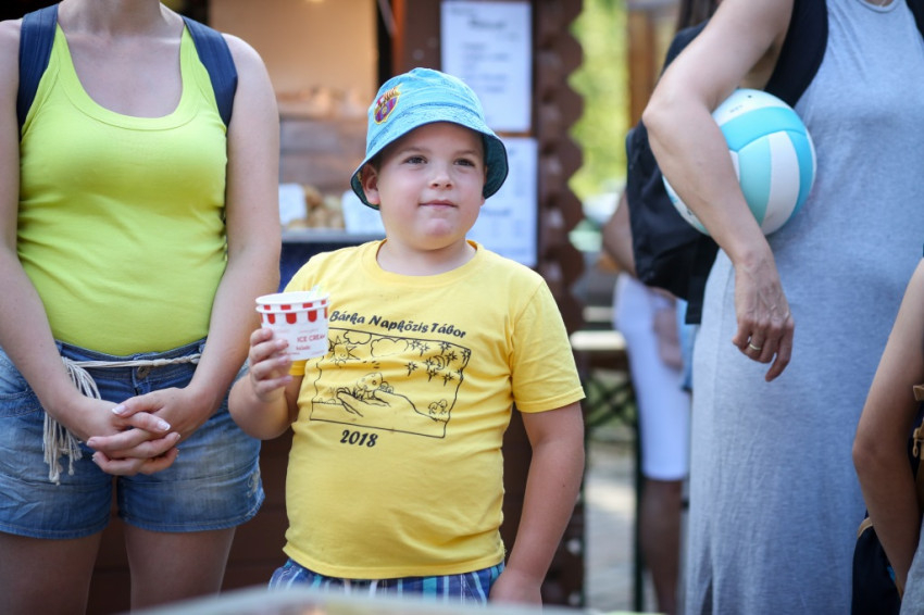 Miközben a kórus énekel, én még körbejárok: a gasztronómiai és a kézműves színteret egyaránt alaposan tanulmányozom. A kép roppant színes, a kínálat meglepetéseket is tartogat. Ilyen például a „jeges mámor” (hungarikum?): az az újfajta fagylalt, amelybe spatnival aprítják a gyümölcsöt. A levendulás mézbor csábításának sem tudok ellenállni.