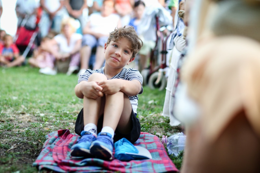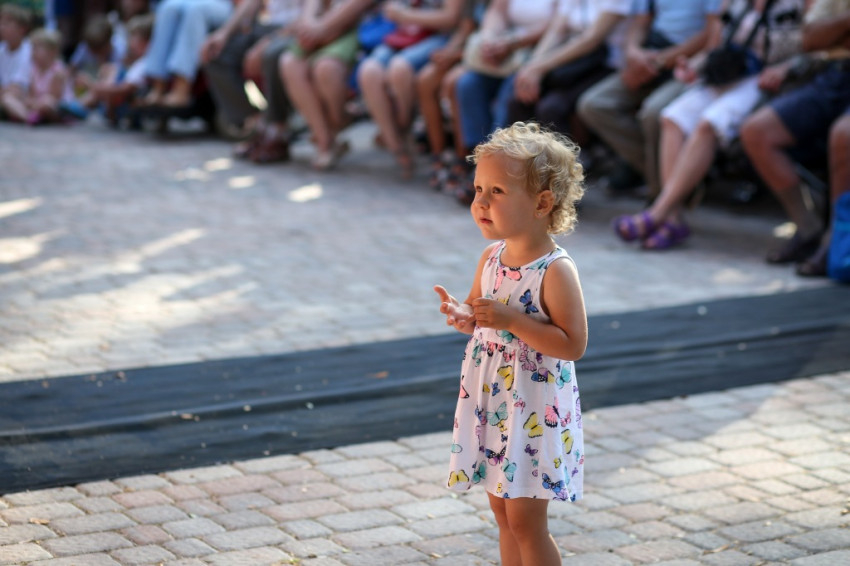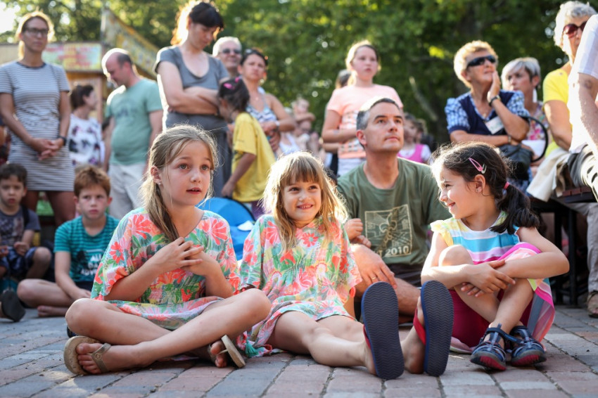 Ahhoz képest, hogy a megnyitóra érkeztünk, máris teljes fokozaton a fesztiváli nagyüzem, és úgy általában tombol a nyár. Engem például majdnem elüt egy úr, aki öt-hat méter hosszú műanyagkrokodillal a hóna alatt nézelődik, de komolyabb vízi járműveket is áttolnak időnként a téren a víz irányába. A színpadon páncélos vitézek kardoznak, a sétányon egy hatalmas konyha a legfőbb látványelem, ezért én a szünetben a „Mit sütsz, kis szűcs?” lakodalmasnóta ütemeire megnézem, mi az az almádi pecsenye. Csülök sült újkrumplival: egy srác éppen kis adagot kér belőle, de nagyot kap – vajon dekára kell fizetni?