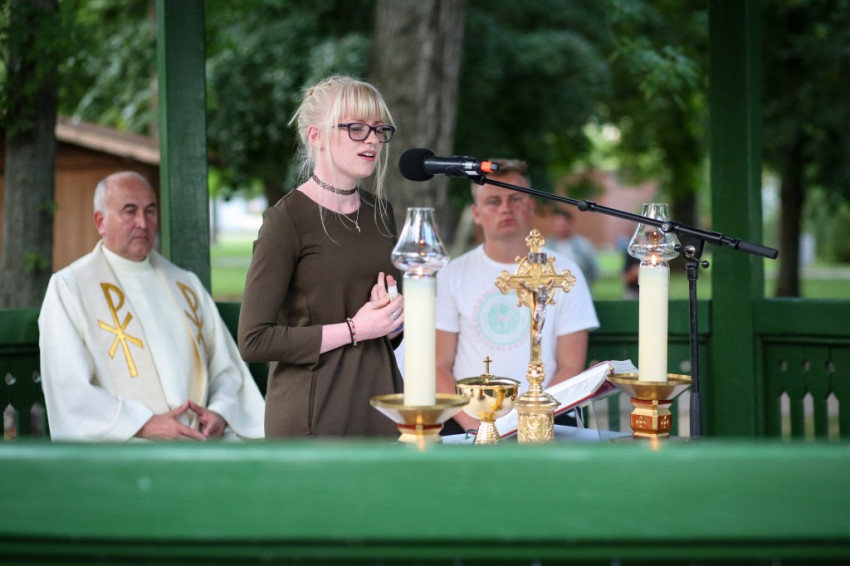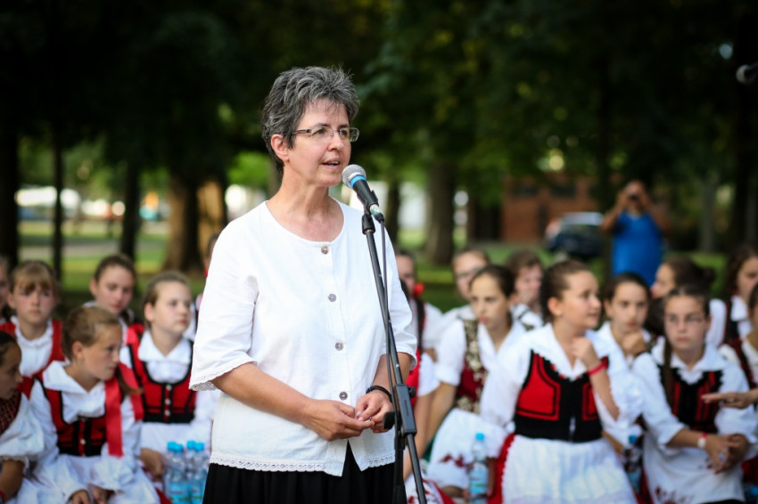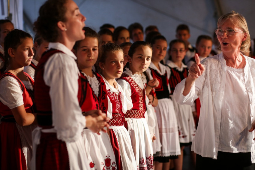 Addig-addig kalandozom, hogy a kolléganőm rám telefonál: mindjárt kezdődik a mise. Átsietek a zenepavilonhoz, ahol éppen Nagy Éva Vera iskolanővér, a kórus vezetője beszél arról, hogy Csaba testvér műve hatására hogyan született meg benne és Czakó Gabriellában az erdélyi magyarok szolgálatának ez a módja, amely a zenei nevelés „ürügyén” közösséget akar építeni. Évről évre eljönnek pénzt gyűjteni a Balatonhoz, az itteni adományokból épült a kórus szovátai háza (Csaba testvér gyermekvédelmi központnak nevezi). Most a kórustag gyerekek házainak korszerűsítésére, felújítására gyűjtenek, mert jó néhányuknak nincsen fürdőszobája. Népfőiskolai rendszerben, hétvégeken és nyáron oktatnak, többféle (kórus-, hangszeres, reneszánsz) táboruk van. Most a Csíksomlyói passió előadására készülnek, a Duna TV augusztus 18-án élőben fogja adni a produkciót.