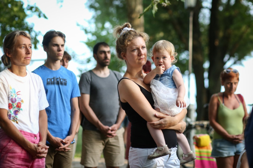Optimizmusunkat negyedórával később az élet is visszaigazolja, mivel a zenepavilon mellett már fél hatkor – ekkor még „civilben” – észrevesszük Böjte Csabát, majd őt követve sétálunk át a part mentén a színpadhoz és a kirakodóvásárba, a Wesselényi strand bejárata elé.
