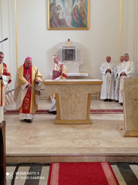 A főpásztor a mise keretében megáldotta a díszeitől megfosztott, Krisztust jelképező, egyszerű méltóságában fénylő oltárkövet is, amelyet azután a hívek teljes díszbe öltöztettek, s virágokkal vettek körül.