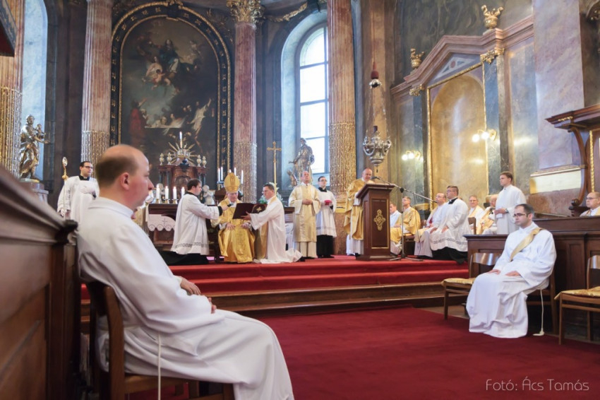 Ma a papi felszentelés révén teljes jogú tagja leszel ennek a presbitériumnak, amelybe a diakónusszenteléskor már inkardinációt nyertél. Ez a papi közösség pedig most befogad téged a kézrátétel ősi gesztusával. Ma bekerülsz Jézus Krisztus legszűkebb barátainak egri körébe. A hatéves felkészülés és próbaidő során Jézus Krisztus egyre inkább életed középpontjába került. Megtanultad tőle, hogy a pap életében semmivel nem helyettesíthető az az időszak, amelyet magányban tölt el, amikor csendben imádkozik, mint a Mester, aki a mai evangélium szavai szerint: „fölment a hegyre, hogy egyedül imádkozzék”. Jézus számára is ez az időszak volt lelke lélegzése, a töltekezés, az Atyával való együttlét ideje. A papnak is az imádság és a csend, az Istennel töltött idő adja meg azt a lelki tartást, amelyre hivatása gyakorlásához szüksége van. Innen kap erőforrást a mindennapokhoz, és különösen azokhoz az időszakokhoz, amikor életének vagy közösségének a bárkáját hányják-vetik a hullámok, amikor azt tapasztalja, hogy ellenszél fúj – fordult az érsek homíliájában a papszentelés előtt álló Bakos Tamáshoz.