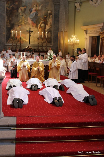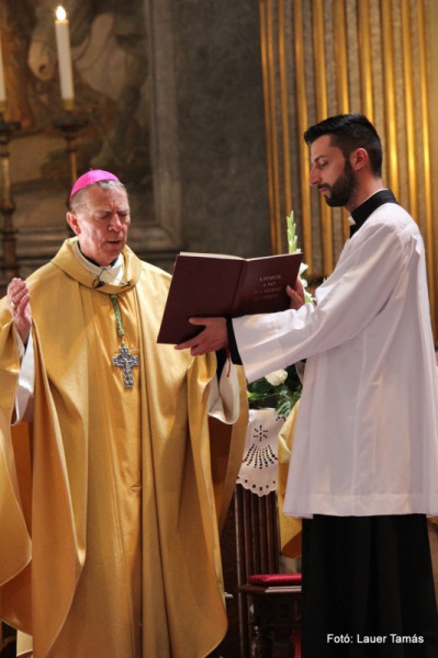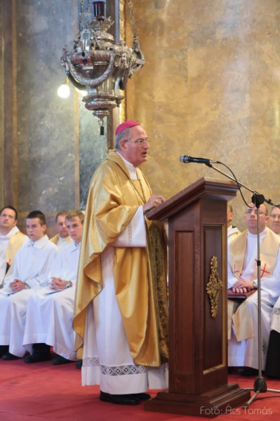 Ne feledjétek, hogy a szolgálat, amelyre most vállalkoztok, nem szűnik meg a papságban sem – szólt a diakonátus rendjének felvételére készülőkhöz az egri érsek. – Tartsátok mindig szem előtt: „Non ministrari, sed ministrare” („Ne nekem szolgáljanak, hanem én szolgáljak”). Ma is arra van szükség, hogy ez az ideál, minden diakónus és pap szolgálatát jellemezze, ez kell, hogy áthassa mindannyiunk papi életét is. Nem azért küldött ugyanis bennünket az Úr, hogy hatalmaskodjunk és zsarnokoskodjunk, hanem hogy a ránk bízottak üdvösségének szolgálatára legyünk.