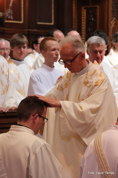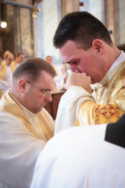 Ezután következett a diakónus-, majd a papszentelés. A szentséget kiszolgáló érsek a felszentelő ima és kézrátétel által adta át a Krisztustól kapott áldozópapi hatalmat és küldetést, majd az egyházmegye papjai kézrátétellel fogadták be az új áldozópapot az egyházmegye papi közösségébe, végül az újonnan felszenteltet beöltöztették a papi ruhába, a főpásztor pedig megkente kezét krizmával, illatos olajjal, ahogy a kiválasztottak: a királyok, a próféták és a papok esetében ez évszázadok óta szokás.