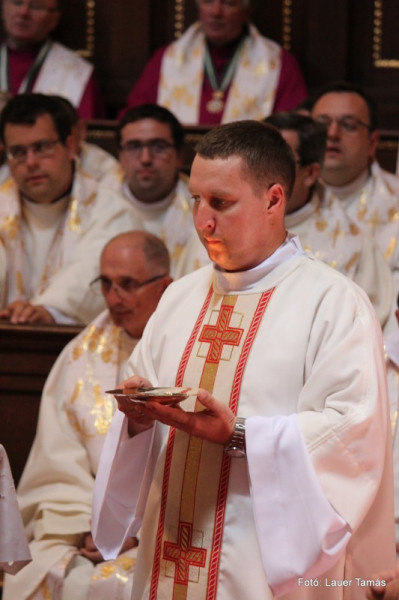 Szintén áldozópappá szentelte a megyéspüspök Lápossy Pétert, aki a szertartás előtt elmondta: papként azt várja magától, hogy a lehető legteljesebb mértékben rá tudjon hagyatkozni Istenre.