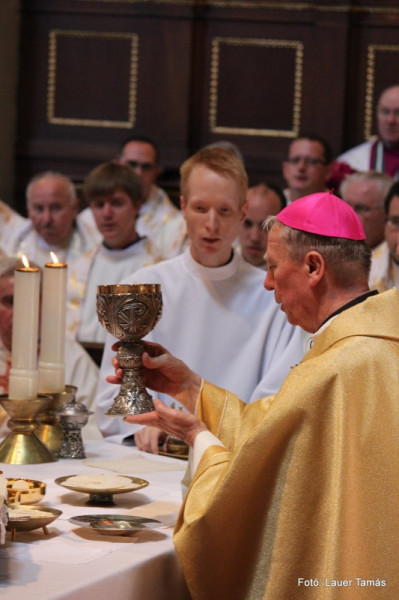 Pápai Lajos püspök, apostoli kormányzó szentbeszédében a papi hivatás krisztusi meghatározottságát állította középpontba. Az apostolok meghívásának történetét felidézve hangsúlyozta, a Jézus Krisztusba vetett hit az az alap, amelyre egy papnak építkeznie kell.