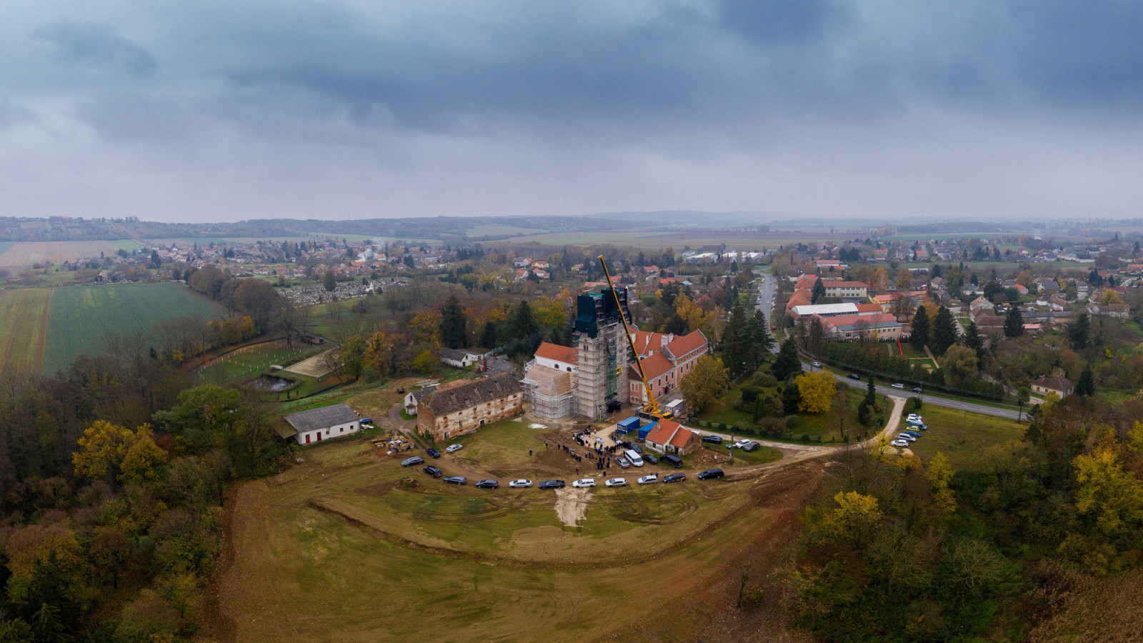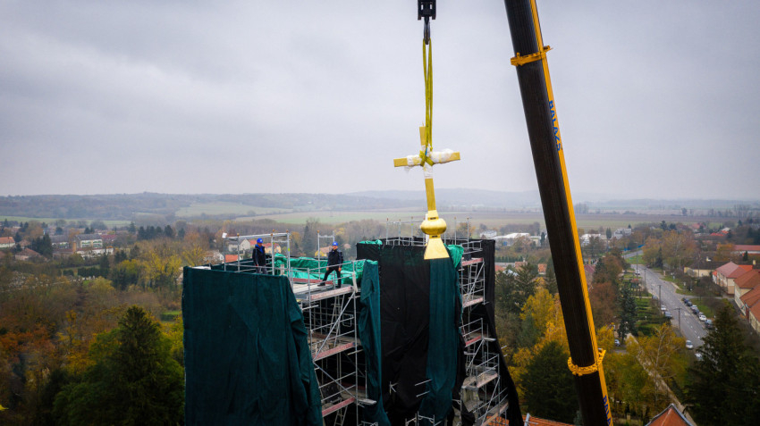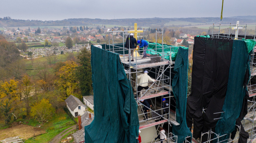 A türjei premontrei apátsági épületegyüttes felújítása olyan szakaszába lépett, amikor már szinte befejeződött a tornyok rekonstrukciója, és felhelyezhették a megújított aranyozott fémkeresztet a templomtorony csúcsára.